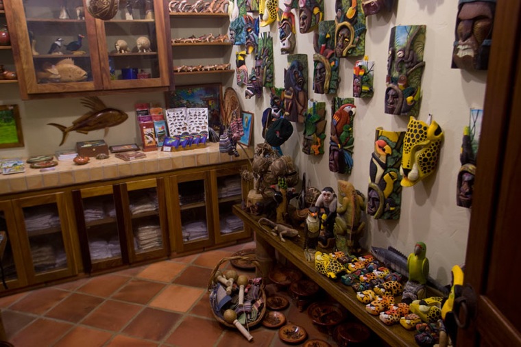 Bosque has a small gift shop located in the main restaurant building. We have a nice selection of crafts from Costa Rica, comprising almost all of the items in the shop; we also try hard to stock the shop with local items that help to support local and indigenous groups. We have an especially good variety of crafts made by the Boruca Indians, including masks, bows and arrows, carved gourds, and carved animals; purchase of these crafts can be vital in helping indigenous cultures survive and continue their traditional crafts. We also have a nice range of hats and t-shirts available. Several of the t-shirts we offer are sold to support conservation groups working in this area- Bosque donates 100% of the profits from these t-shirts to the organizations (such as Women of the Osa, the Osa Turtle Conservation Project and Friends of the Osa).