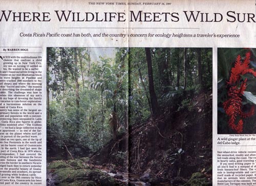 The country has some of the largest untouched primary forests in the world and a government and population with a commitment to protecting them unequaled in Latin America. Costa Rica also figures in globe-trotting films modeled after “The Endless Summer”- we had a large collection in our East Side apartment- as one of the far-flung places on the planet where surf pilgrims go in pursuit of the perfect wave.