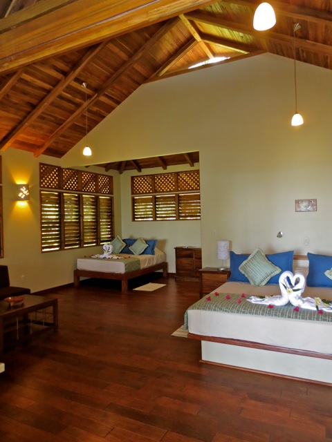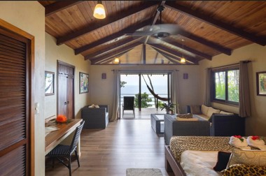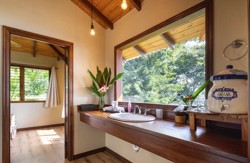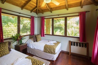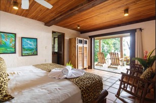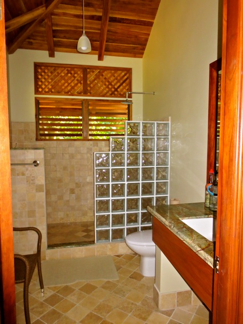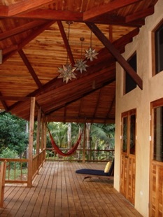 Guests are treated to unbelievable panoramic ocean and sunset views from the decks. Miramar is perched atop a hill, 775 meters from the restaurant area, and it provides total privacy; of course there is a greater amount of hiking required to get to the main lodge/restaurant area from Casa Miramar than from the oceanview cabinas or Casa Blanca. The house does have its own power system (created by solar power) which provides lights, power for appliances that aren't heavy power users, and small fans (provided in the bedrooms). Miramar also has hot water that is generated by a solar hot water system.